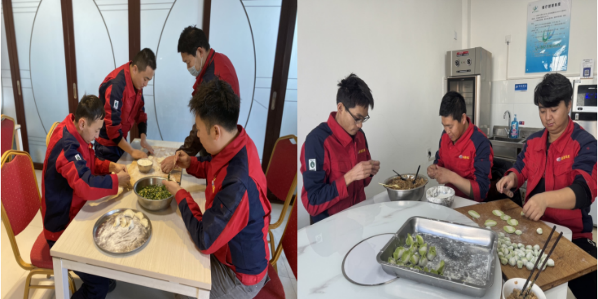 活動(dòng)最后,大家一塊來到食堂,共同準(zhǔn)備除夕夜豐盛的年夜飯,在場(chǎng)職工們個(gè)個(gè)打起精神來,干勁十足,各自領(lǐng)了任務(wù)開始忙活起來,拿案板剁肉、切菜、和面,大家你一言我一語(yǔ)說著,笑著,食堂的歡笑和香味一起飄出場(chǎng)站。大家歡聚一堂共享除夕盛宴,共同舉杯祝福新春。
