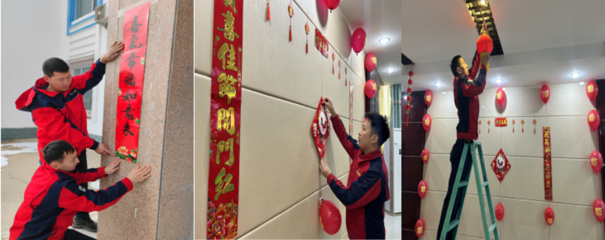 為了營(yíng)造喜慶、祥和的節(jié)日氣氛,大家齊心協(xié)力為電站換上了“龍年新裝”,大家一起動(dòng)手,打掃場(chǎng)站衛(wèi)生、貼對(duì)聯(lián)、貼福字、掛燈籠,張燈結(jié)彩、好不熱鬧,陣陣笑聲中散發(fā)出溫馨喜悅迎新春的氛圍。