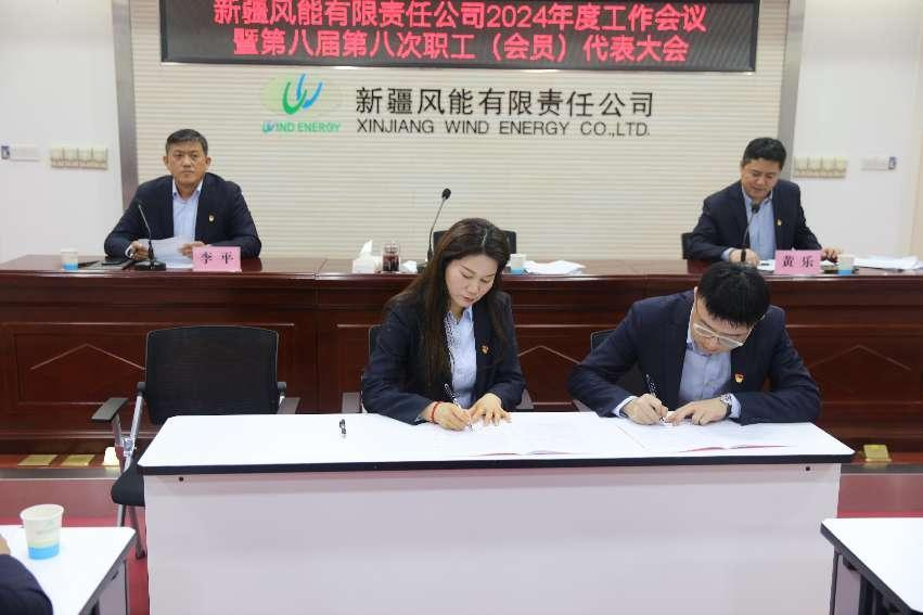 接著,公司黨委副書記、副總經(jīng)理黃樂,黨委委員、副總經(jīng)理李平分別宣讀了新疆風(fēng)能有限責(zé)任公司2024年工作要點、黨建工作要點、安全環(huán)保工作要點及任務(wù)分解。李雪梅分別與高級管理人員,各支部、部門簽訂《黨建工作目標(biāo)責(zé)任書》《業(yè)績考核責(zé)任書》《安全生產(chǎn)目標(biāo)責(zé)任書》。