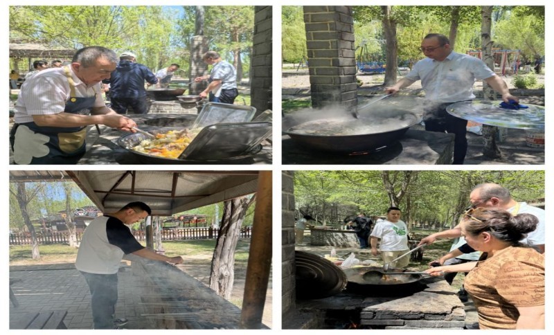 到達(dá)活動(dòng)農(nóng)場,員工們以部門為單位分成了若干小組,熱火朝天的忙碌起來。平日里在崗位上獨(dú)當(dāng)一面的職工們,此刻紛紛變身大廚,切菜聲、炒菜聲、歡笑聲交織在一起,組成了一曲和諧的“廚房交響樂”。有人負(fù)責(zé)切配食材,刀工嫻熟;有人掌勺烹飪,精心調(diào)味;有人打下手,傳遞工具、清洗碗筷。大家各司其職、默契配合。不一會(huì)兒,一道道色香味俱全的佳肴便陸續(xù)出鍋,熱氣騰騰的手抓飯、鮮香的辣子雞、香氣四溢的燒烤…… 大家圍坐在一起,共同品嘗親手制作的美食,互相夸贊、分享烹飪心得,現(xiàn)場氛圍溫馨又熱烈。